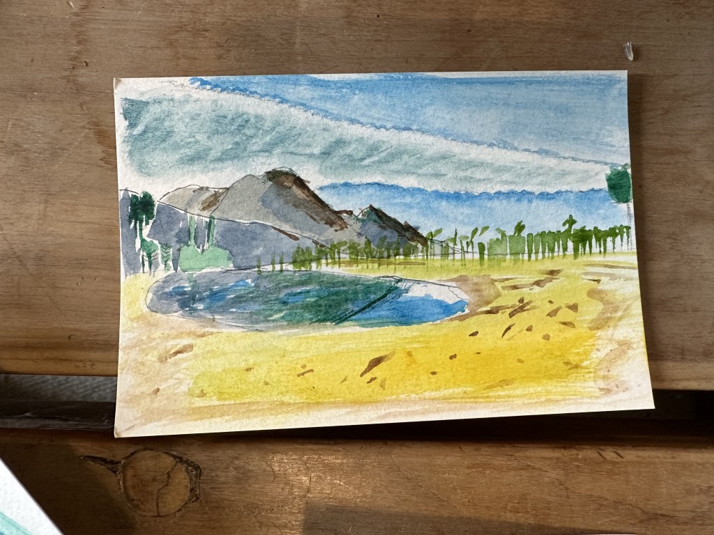 July 13, 2023July 14, 2023 Aldea de los Huemules, Chubut, Argentina El Hoyo 1 Aldea de los Huemules, Chubut, Argentina Watercolor on 3″ x 5″ postcard, James Ernest Malphurs, 2023 Share this: Share on X (Opens in new window) X Share on Facebook (Opens in new window) Facebook Like Loading...