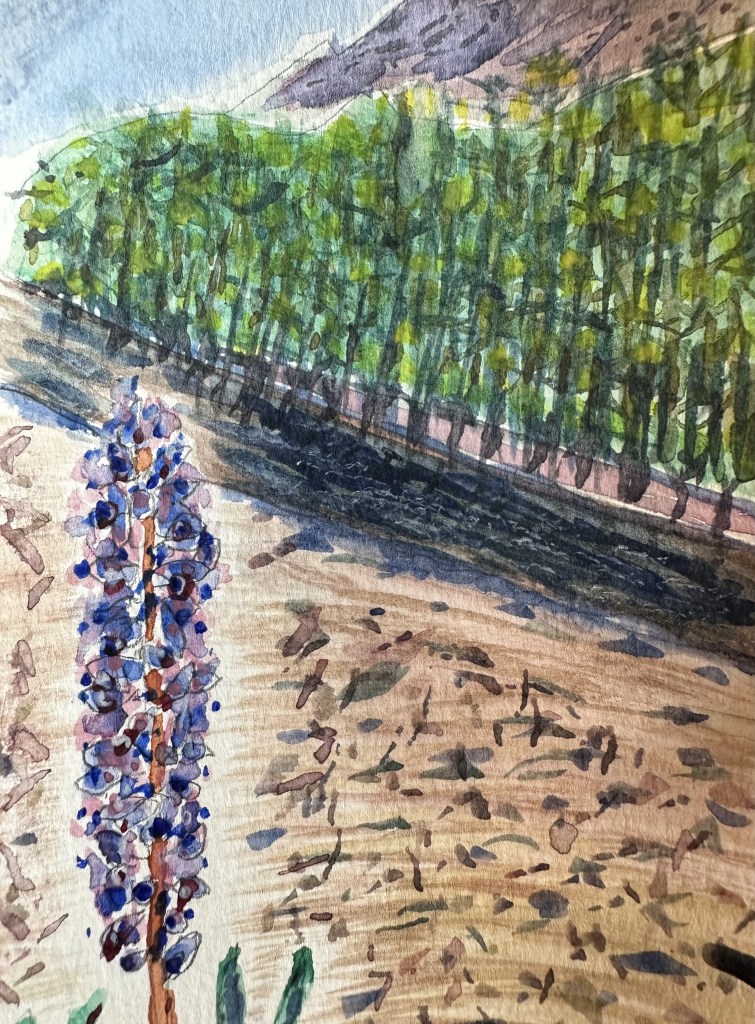 July 14, 2023July 14, 2023 Lupin at Epuyén River, Chubut Wildflower at Aldea de los Huemules, Chubut, Argentina, 2023 Watercolor on 3″ x 5″ postcard by James Ernest Malphurs Share this: Share on X (Opens in new window) X Share on Facebook (Opens in new window) Facebook Like Loading...